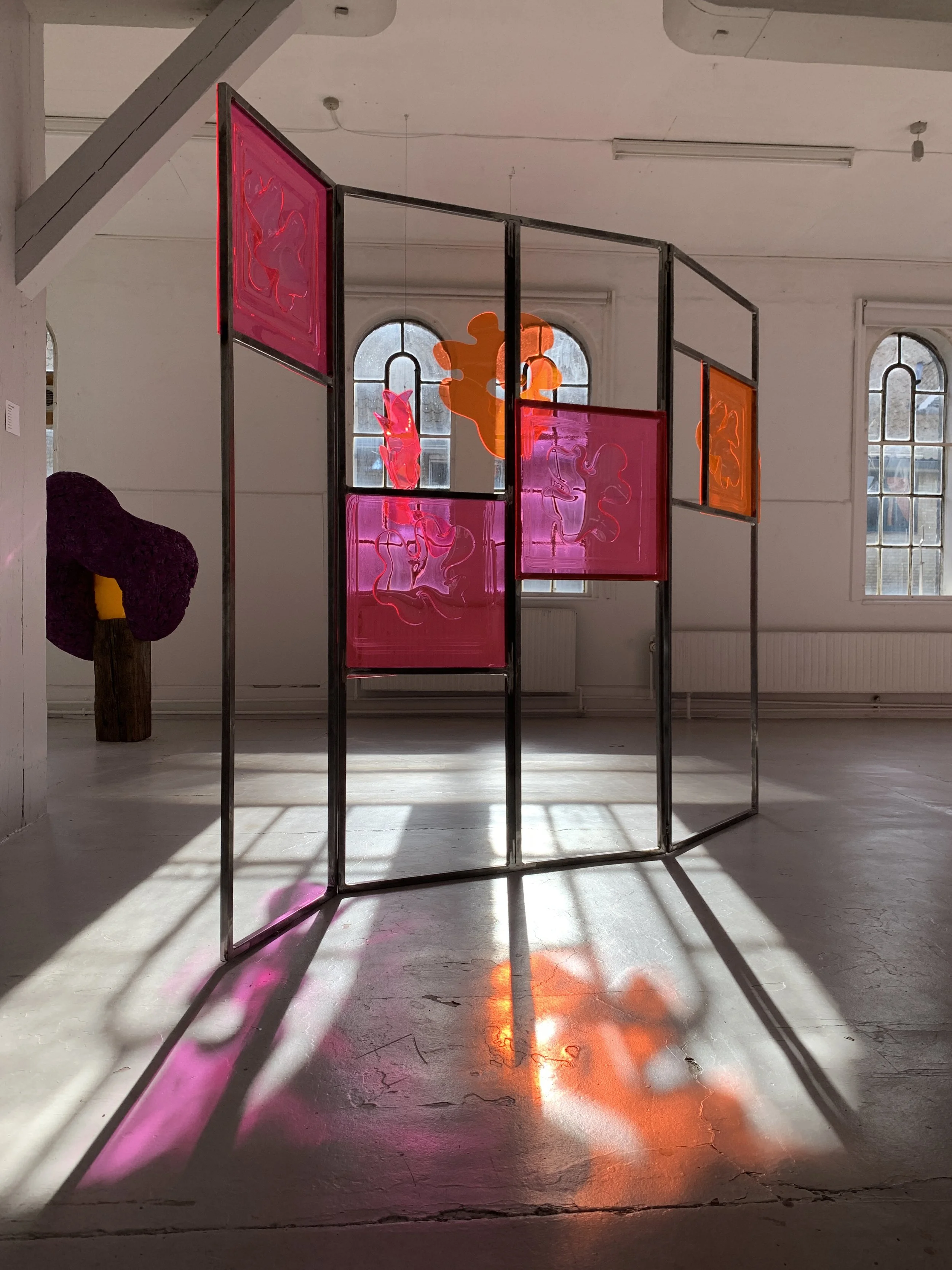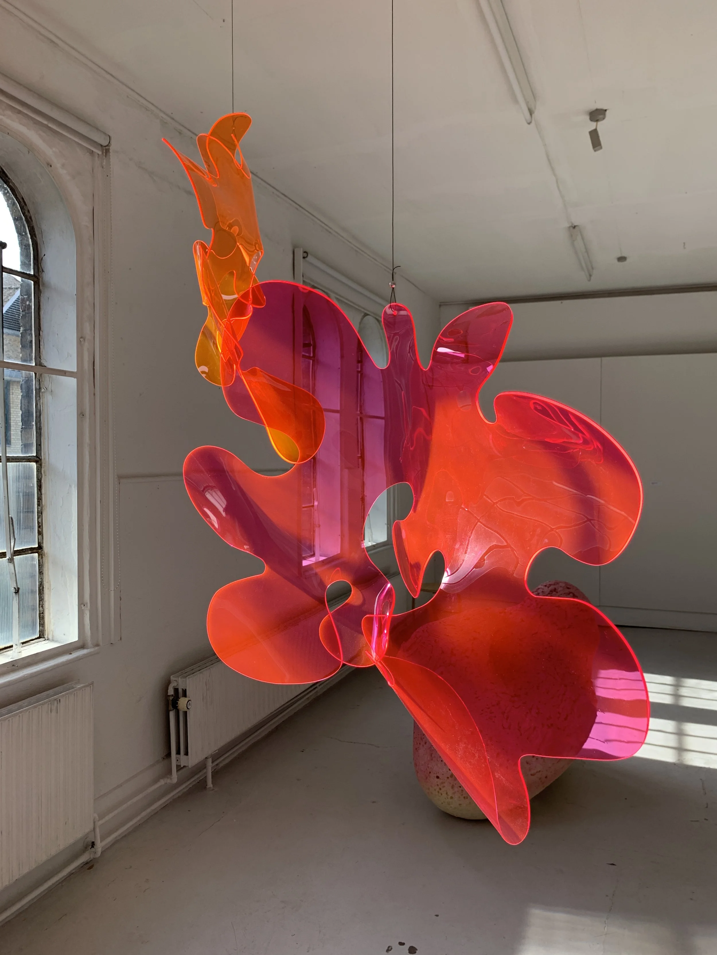 Through the process, I explored the power and dynamism of organic curves and shapes, striving for a wordless connection between the sculpture and the viewer. By experimenting with materials (acrylic, metal, leather, foam) and techniques (heat molding, welding, laser cutting), I created a rhythm between familiarity (organic forms) and unpredictability (experimental results), giving each sculpture a unique expression and inviting new experiences for the viewer.